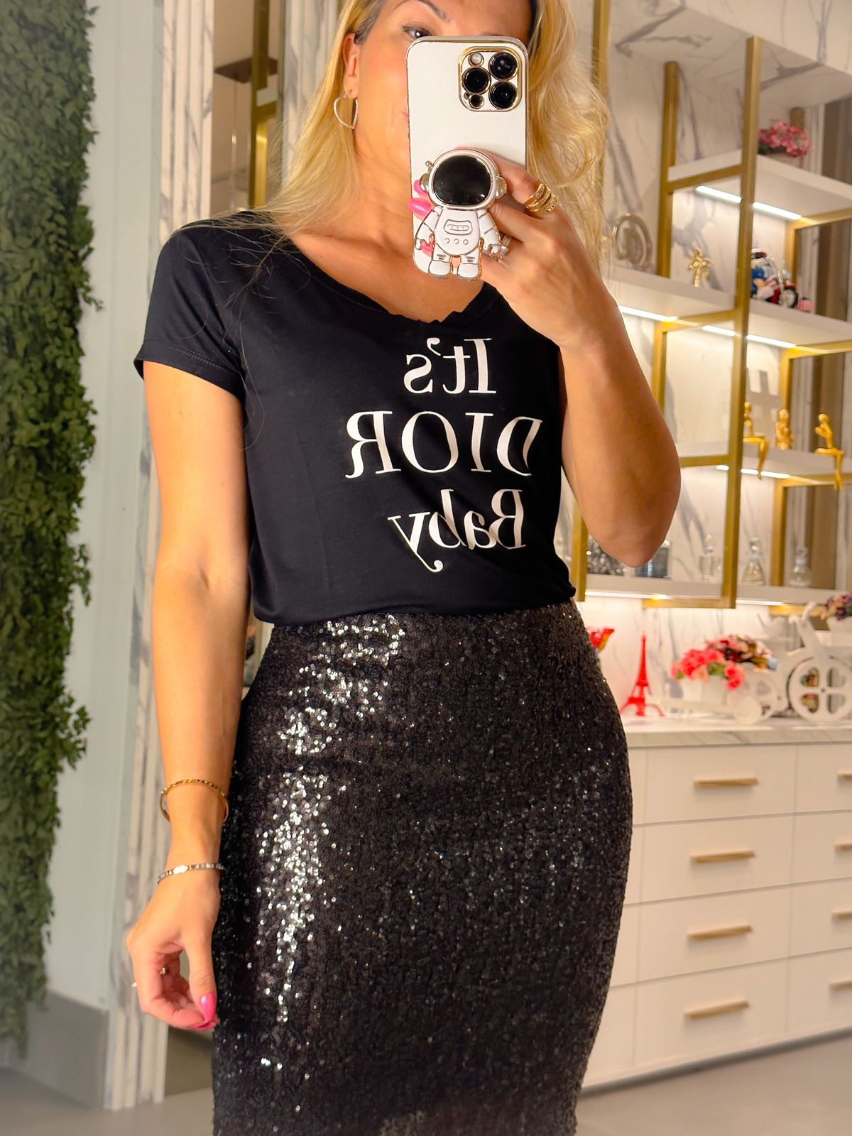 Saia com elastano toda em Paetes